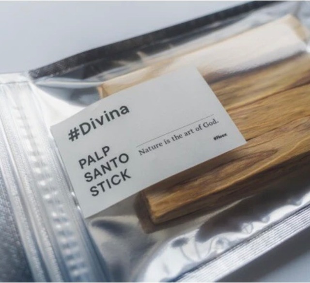 【パロサントとは】 パロサント(Palo Santo)はスペイン語で「聖なる木」を意味します。主な産地は、南アメリカと中央アメリカの一部の地域で、#Divinaはペルー産の原木を使用しています。かつてはラテンアメリカの先住民たちが「神の樹」と呼び、 魔除けとして使用されてきた香木でが、現代ではその香り高さから、 NY周辺のファッション業界やヨガインストラクターなど、 サステナブルなライフスタイルに感度の高い人々から注目を集めています。希少性が高く、濃厚な香りを放ちながら空間を演出する、今話題の リラクゼーションアイテムです。 【商品仕様】 数量 : 1パック4-5本入り(スティックの重量により本数が異なります) 長さ : 約10cm ※自然木のため色や大きさに個体差がございます。予めご了承下さい。 ※4本で一ヶ月相当使用可能です。(個人差がございます) 【ご使用方法】 1. パロサントスティックにキャンドル等で着火します 2. 煙が出たら手で扇ぐように火を消します 3. スティックを手に持ち空間に煙を拡散させます 4. 煙は1分ほどで自然に鎮火します 5. 鎮火中は香炉や灰皿等に置くと安全です ※パロサントは天然の香木のため、環境によっては湿気を含み燃えにくくなる場合があります。 その場合は日光が当たる場所で数時間放置すると水分が抜け、燃焼しやすくなります。