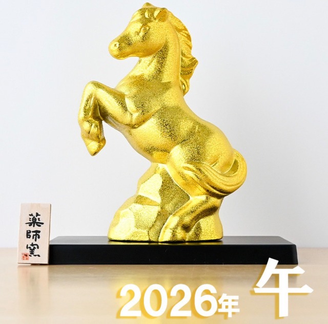 ★ 薬師窯の干支 ★ 古来より午(馬)は生後すぐに走り出すことから立身出世や幸運を招く動物として人々から尊ばれてきました。どんな道も恐れず駆け抜ける姿は苦難を乗り越える力強さを感じさせ発展と向上の一年となるようにとの願いが込められています。 【薬師窯のブランドコンセプト】 薬師窯(やくしがま)は、1000年以上の歴史あるやきものの街、愛知県瀬戸市の陶磁工房 中外陶園の窯名です。 明治以来瀬戸の地で伝承されてきたセトノベルティの技法により、干支(えと)置物や招き猫、雛人形、五月人形をはじめ、 縁起物や四季折々の季節飾りなど現代の「和飾り」を提案する中外陶園の商品ブランドです。 内容 置物×1個・置台x1個・木札x1個 サイズ 高さ13cm×横巾9cm×奥行5.5cm 素材 陶器 原産国 日本