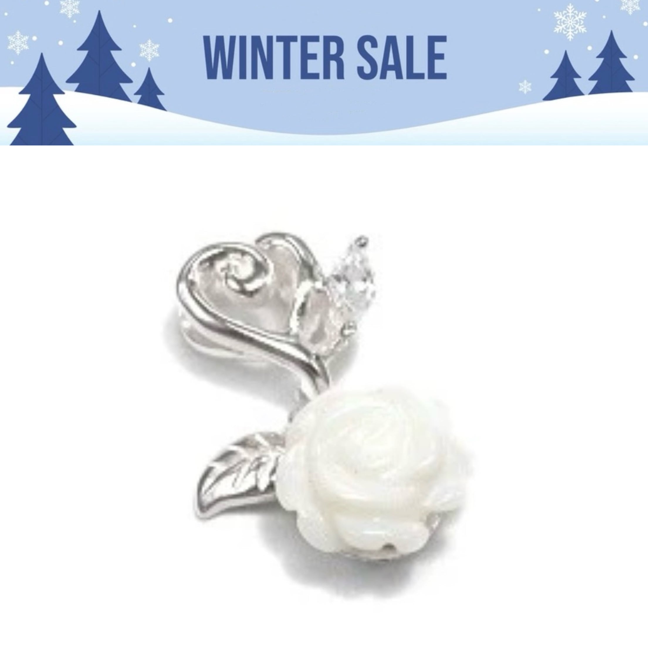 純白の気品をまとった、ホワイトシェルの薔薇ペンダント。