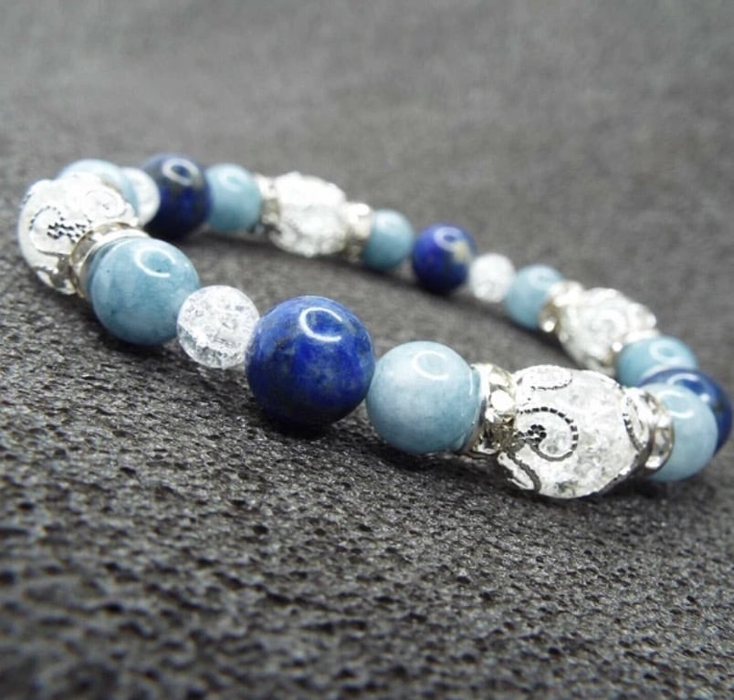 澄んだ青と透明感のある石たちが、静かに願いを後押ししてくれるブレスレット。