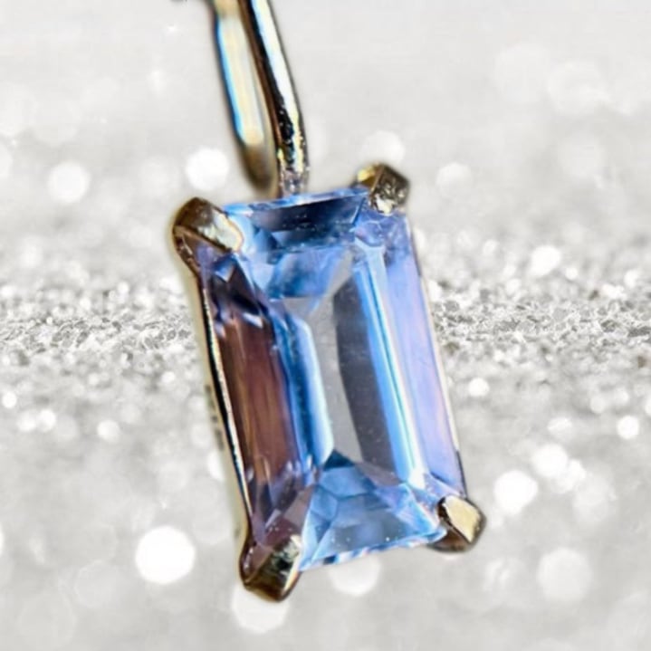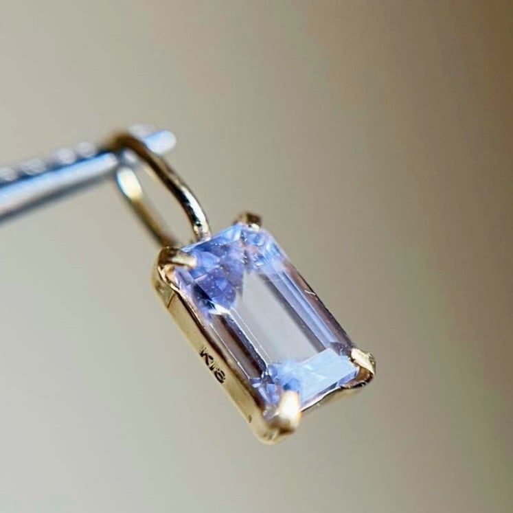 パープリッシュブルーがキラリと輝く天然タンザナイトのバケットカットのペンダントトップです。