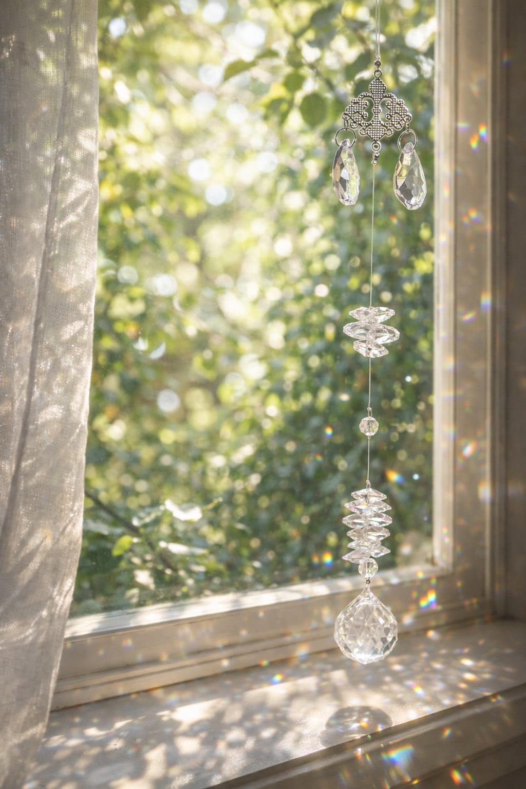 クリスタルガラスが太陽の光を受けお部屋の中にたくさんの虹を運んでくれる光のインテリアです。